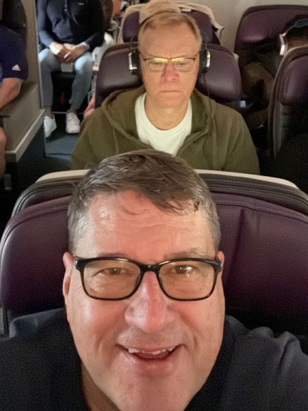 And what of the Final Four? Ella and Fong have arrived at Dulles and are waiting for their Parisian flight. Rob and I are comfortably ensconced in Newark waiting to board our flight this evening, feeding both our electronic devices and ourselves in one of the largest and most crowded United Lounge I’ve ever seen.