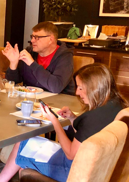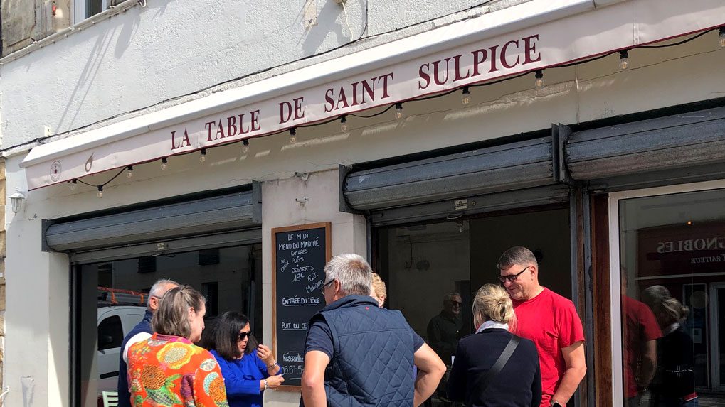 After touring their facilities and sampling some grapes off the vine, we gathered in their tasting room to sample four of their reds. Once the tastings were done, the Courduries invited us for lunch at a nearby restaurant, La Table de Saint Sulpice.