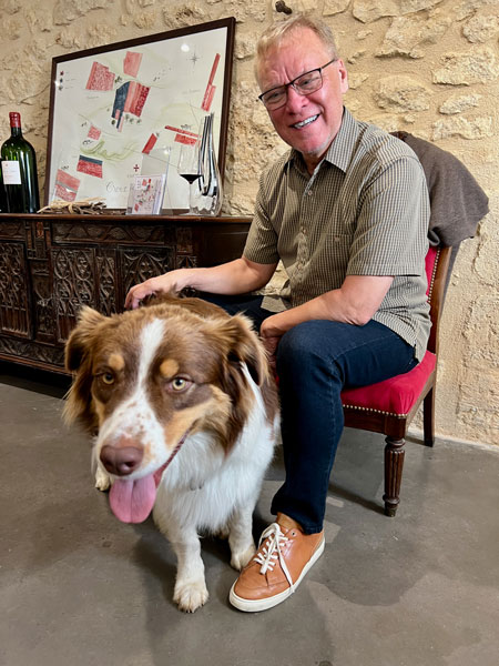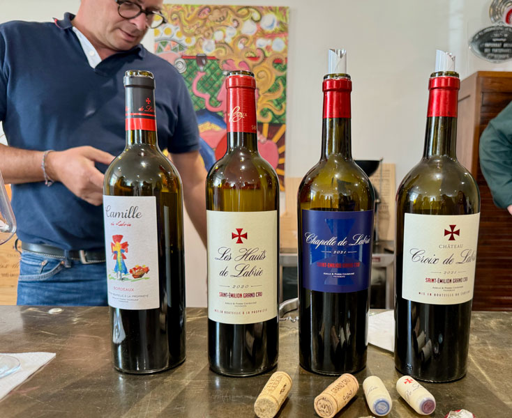 Our next stop was Château Croix de Labrie for a tour and a more reasonable 11:00 AM wine-tasting. Not to denigrate but to exalt this winery, I sensed a refreshing bit of “60s hippie commune” vibe about it. A smaller family operation, built with scattered “chunks” of vineyard acreage pieced together over time, Axelle and Pierre Courdurié’s farming methods are 100% organic. Their vines are meticulously tended by using natural, time-honored methods honed and perfected by Axelle. Pierre’s primary focus is on the wine-making process.