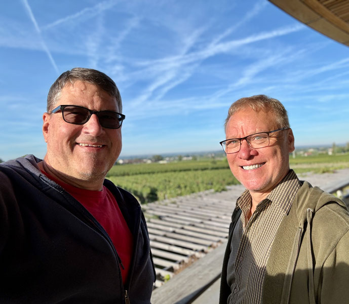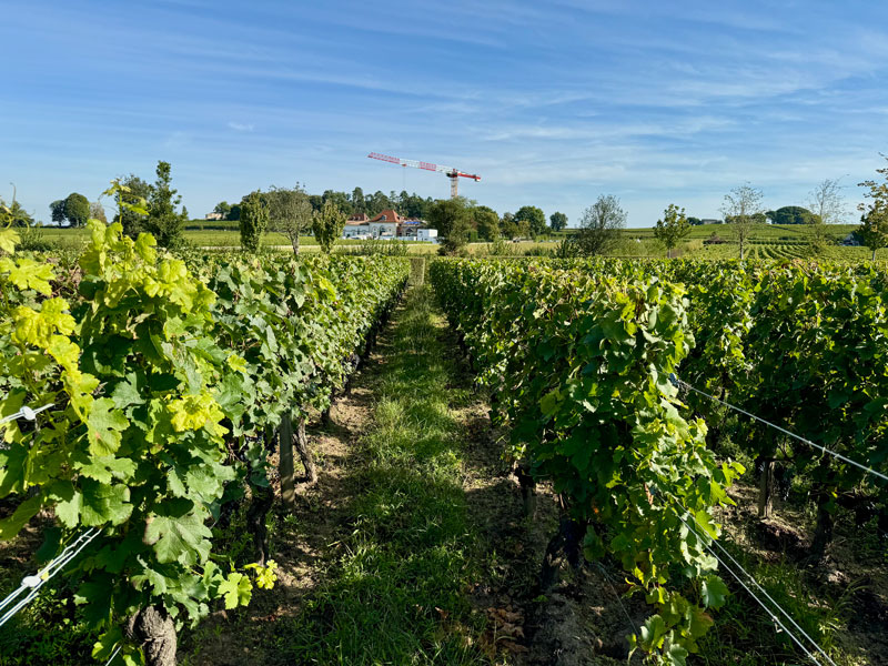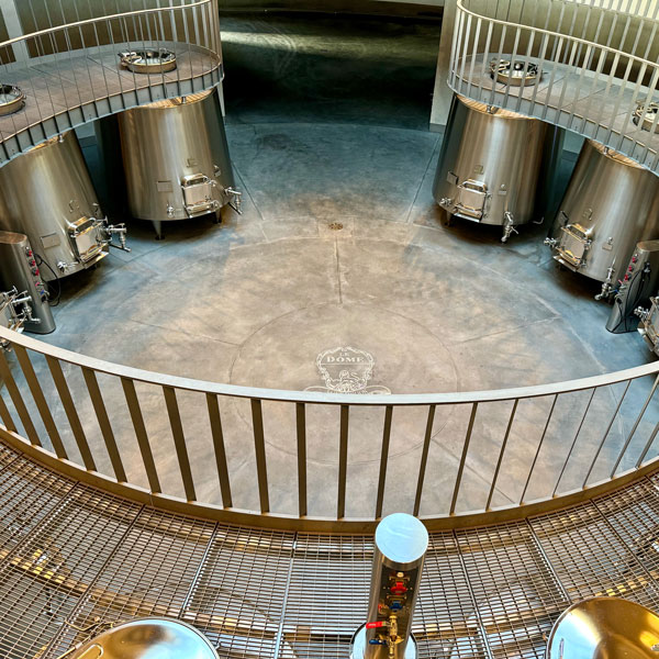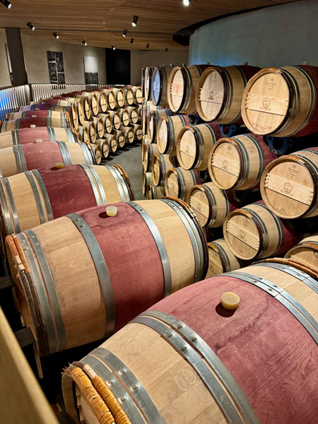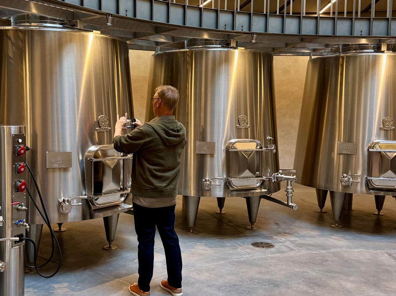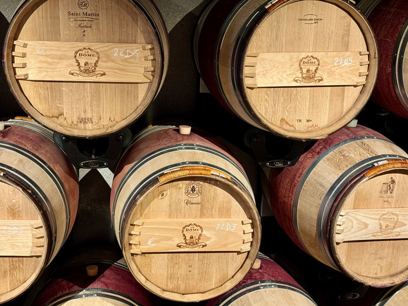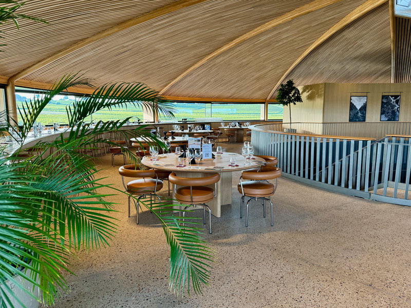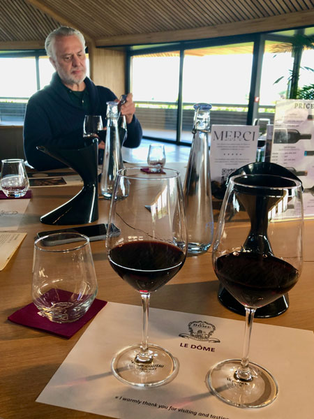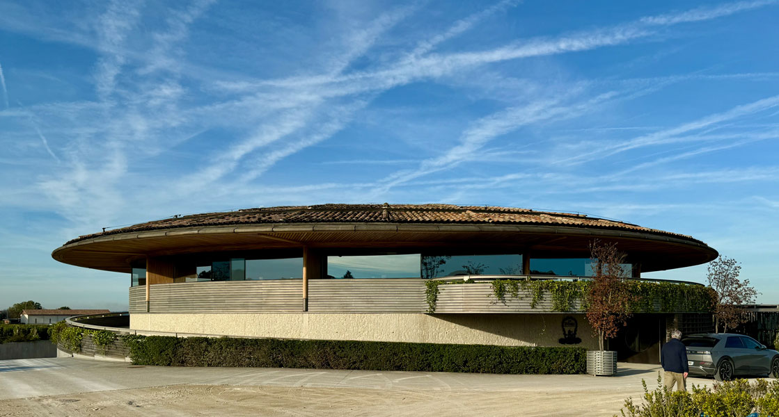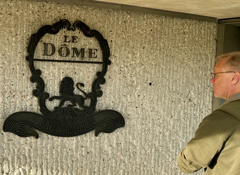 Our first stop was Le Dome for a 9:00 AM wine-tasting hosted by Jonathan’s son, Jack. (A wine tasting at 9:00 AM in the morning, you ask incredulously? The owner did!) This facility is Château Teyssier’s pride and joy…and rightly so. What an incredible building! It’s as if, after finishing up in Egypt, the alien builders of the pyramids landed amidst the vineyards of Saint-Émilion to toast a job well done…then stayed. To quote their website: