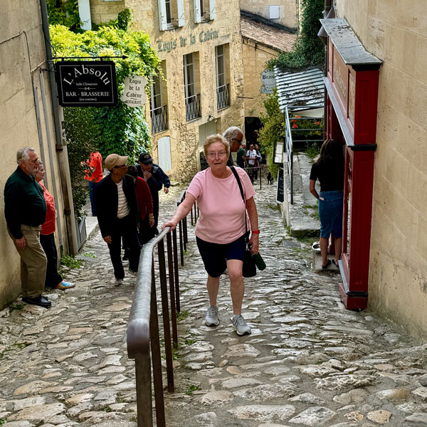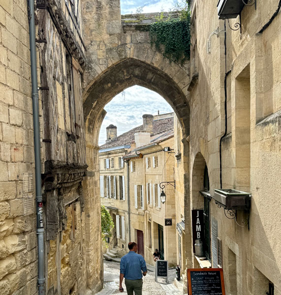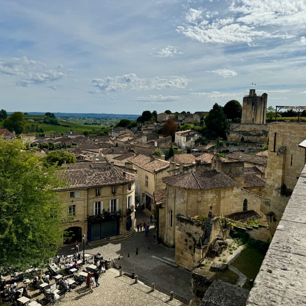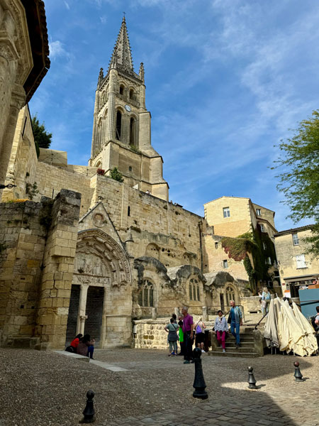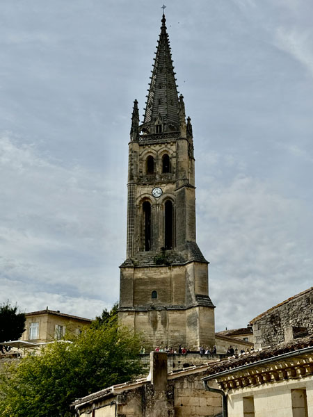 With lunch out of the way, it was time to unsnap the wine-tasting bibs and pop on the tourist berets as we explored the heights and highlights of cobble-stoned Saint-Émilion, the medieval namesake for the surrounding wine region. Our group split apart as we navigated the ever-higher climbing streets of the town until we eventually reached the highest elevation, a church as you might guess.