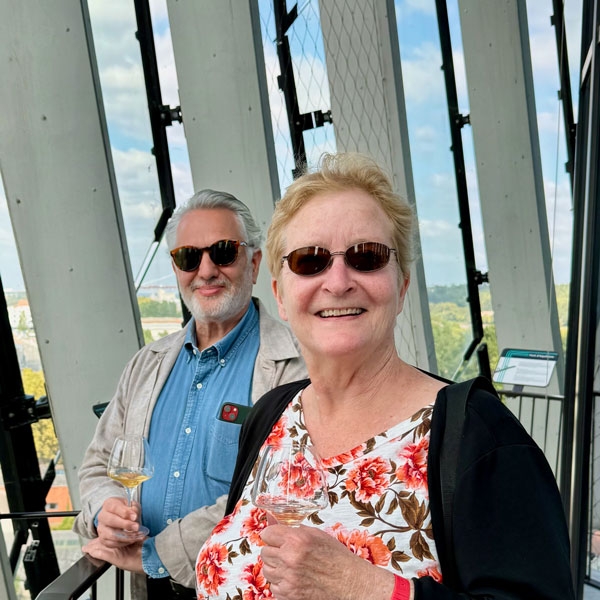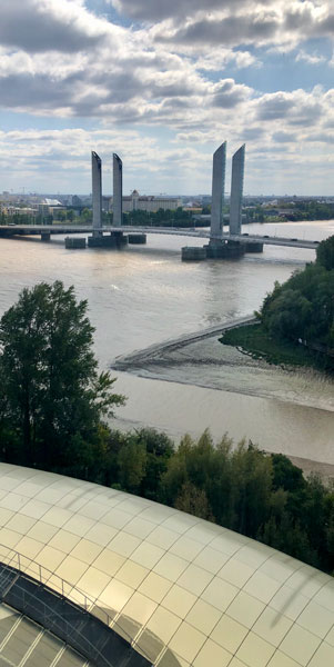 As for our visit, I could have used more time. Afterwards, when Rob, Peg and I were comparing notes, I discovered that there were many exhibits and encounters I never found, much less experienced. But we were on a timetable (altho’ we probably could have diverted from it with ease) and were meeting in the “observation bar” atop the museum for an included glass and the view. So, after a tasty flute of a sparkling rosé, we bid adieu to the Cité du Vin and headed back to the hotel in anticipation of tonight’s dinner.