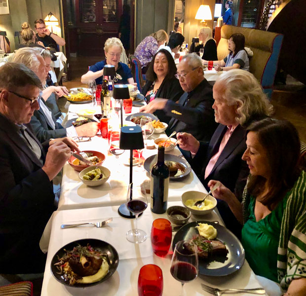 As for our visit, I could have used more time. Afterwards, when Rob, Peg and I were comparing notes, I discovered that there were many exhibits and encounters I never found, much less experienced. But we were on a timetable (altho’ we probably could have diverted from it with ease) and were meeting in the “observation bar” atop the museum for an included glass and the view. So, after a tasty flute of a sparkling rosé, we bid adieu to the Cité du Vin and headed back to the hotel in anticipation of tonight’s dinner.