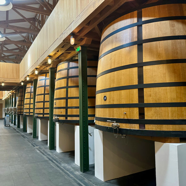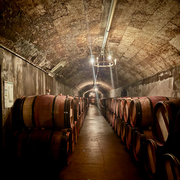 We toured their facilities from the fermenting barrels on the upper level to the aging barrels in the catacombs.