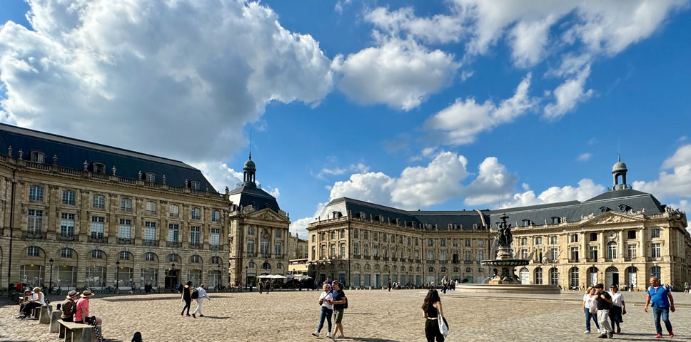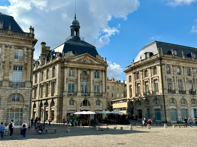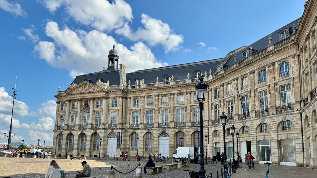 The buildings that embrace the royal square include the central pavilion, the Palais de la Bourse and the Hôtel Fermes. The latter two have been repurposed as the Chamber of Commerce and the National Museum of Customs.
