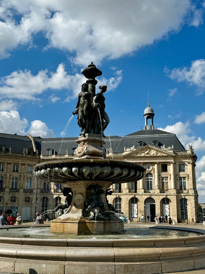 Prominent in the Place de la Bourse is the Fountain of the Three Graces. The three figures represented are daughters of Zeus: Aglaia, Euphrosyne and Thalia. Interestingly, this fountain is not original to the square. It replaced a statue of Napoleon in 1869, which itself was a replacement for the original statue of Louis XV who was removed for obvious reasons.