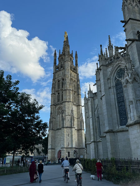 And what tour of a European city would be complete without a cathedral? What I found particularly interesting about Bordeaux’s Cathedrale Saint-Andre (Cathedral of Saint Andrew) was its free-standing bell tower. An architectural delight in itself, it was built separately when it was discovered the planned attached bell tower could not support the weight of the bells it was intended to house.
