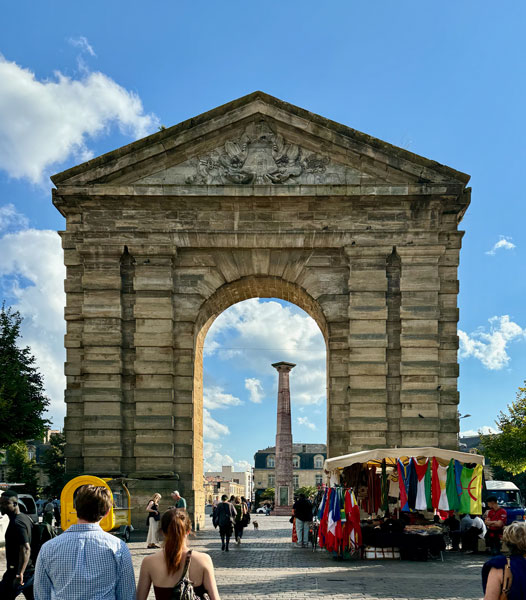 Having taken in the most impressive and expansive sight in Bordeaux, we continued walking under the guidance of a pre-formulated tour from the GPSmyCity app. We visited three former city gates: the Porte Cailhau or Palace Gate, the historic city gate of Bordeaux; the medieval Saint Eloi gate which houses the Grosse Cloche or Big Bell; and the Porte d’Aquitaine, free-standing at the point where rue Sainte-Catherine ends and the University of Bordeaux’s campus begins.